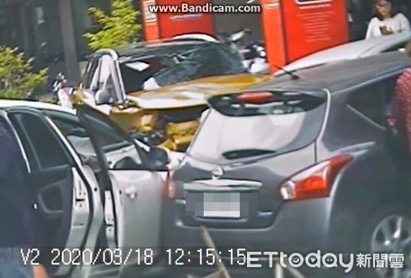 ▲宜蘭市區18日中午女中路三段傳出車禍,2車發生碰撞後又不幸波及路旁2台靜止轎車。(圖/記者游芳男翻攝)