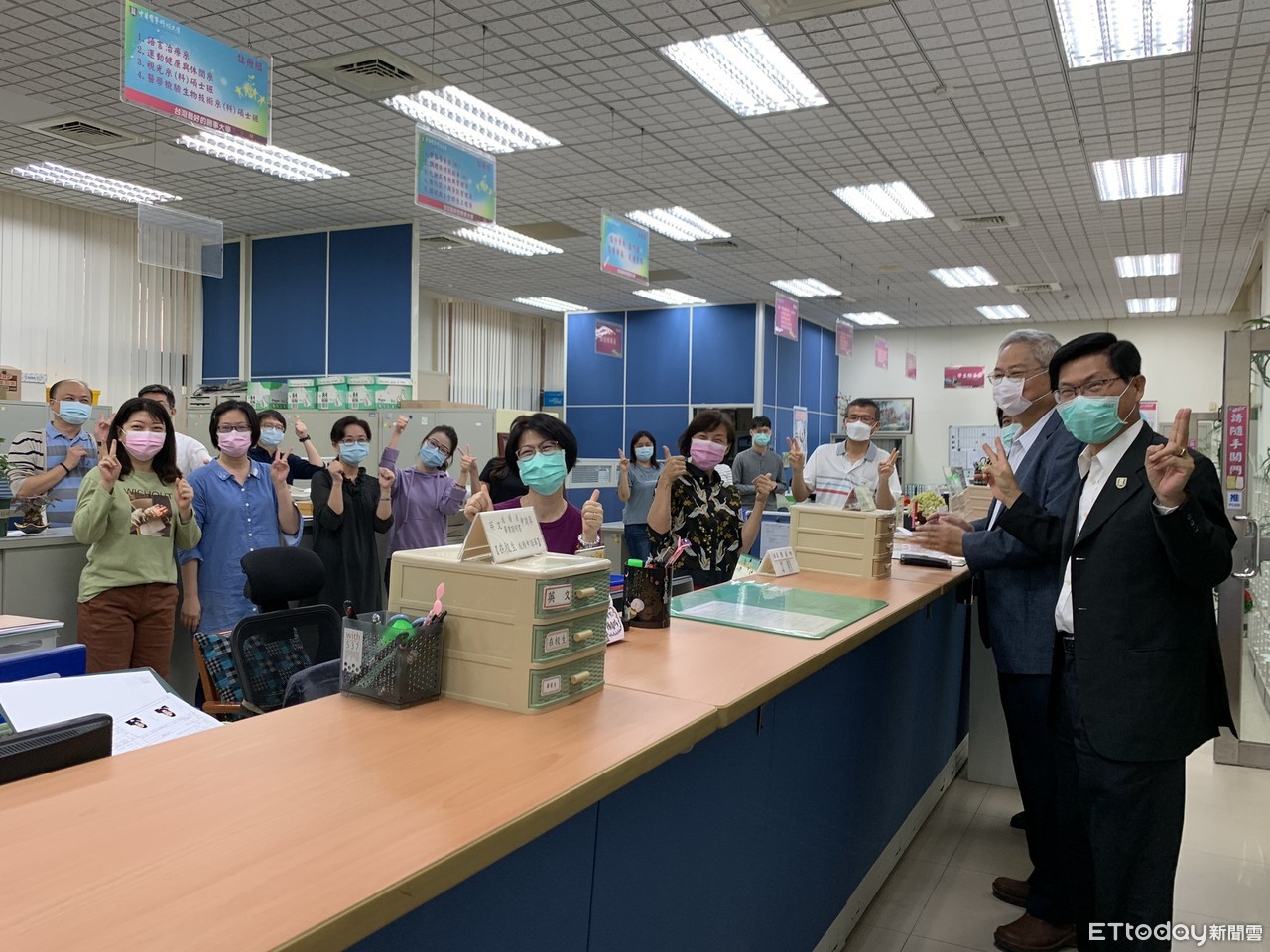 董事長鄭啟瑞19日在校長曾信超的陪同下至各處室向職員宣佈好消息,並慰問大家的辛勞,全體職員雀躍不已向前簇擁表達感謝,興奮之情溢於言表。
