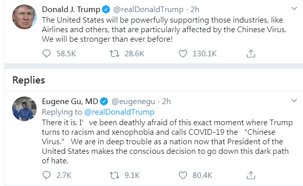 ▲美國總統川普一連多天都使用「中國病毒」形容新冠病毒。(圖/翻攝推特)