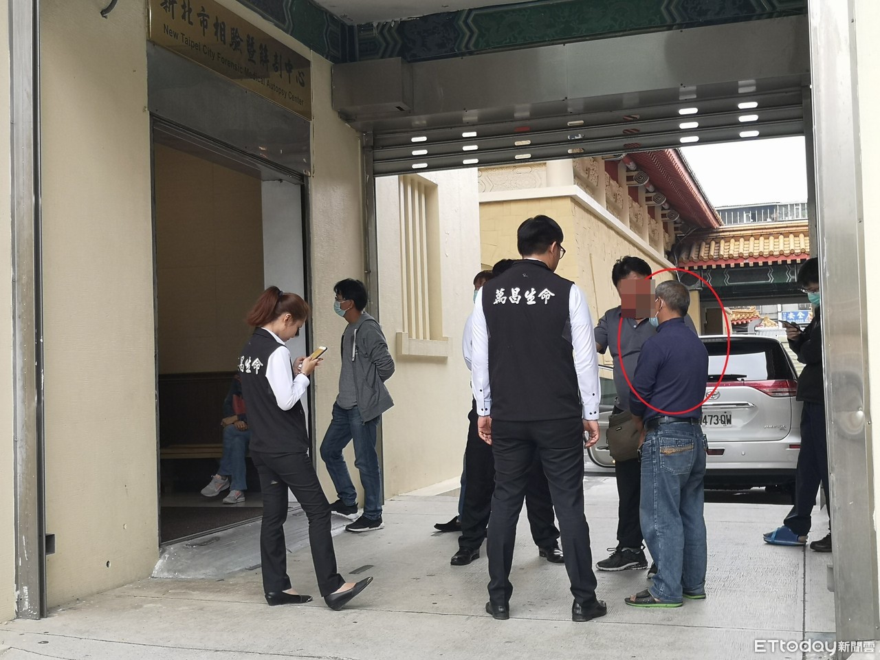 ▼賴女父親及友人到達板橋殯儀館。(圖/記者陳豐德攝)