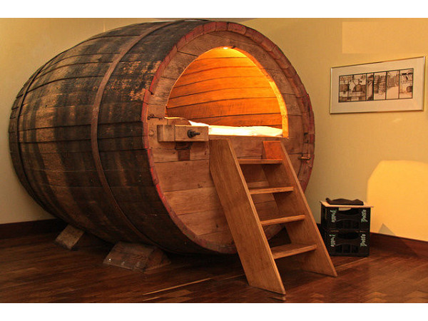 客倌們看到這樣的木桶出現在房間裡可先別大笑三聲,旅館業者可不是在開玩笑,這些酒桶從19世紀開始使用,最後一次退役是在1995年,走進木桶裡用力吸一口氣,說不定還會聞到淡淡酒香XD