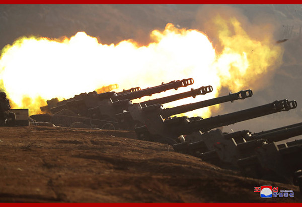 ▲北韓21日舉行西部前線大聯合部隊炮擊對抗賽。(圖/翻攝朝中社)