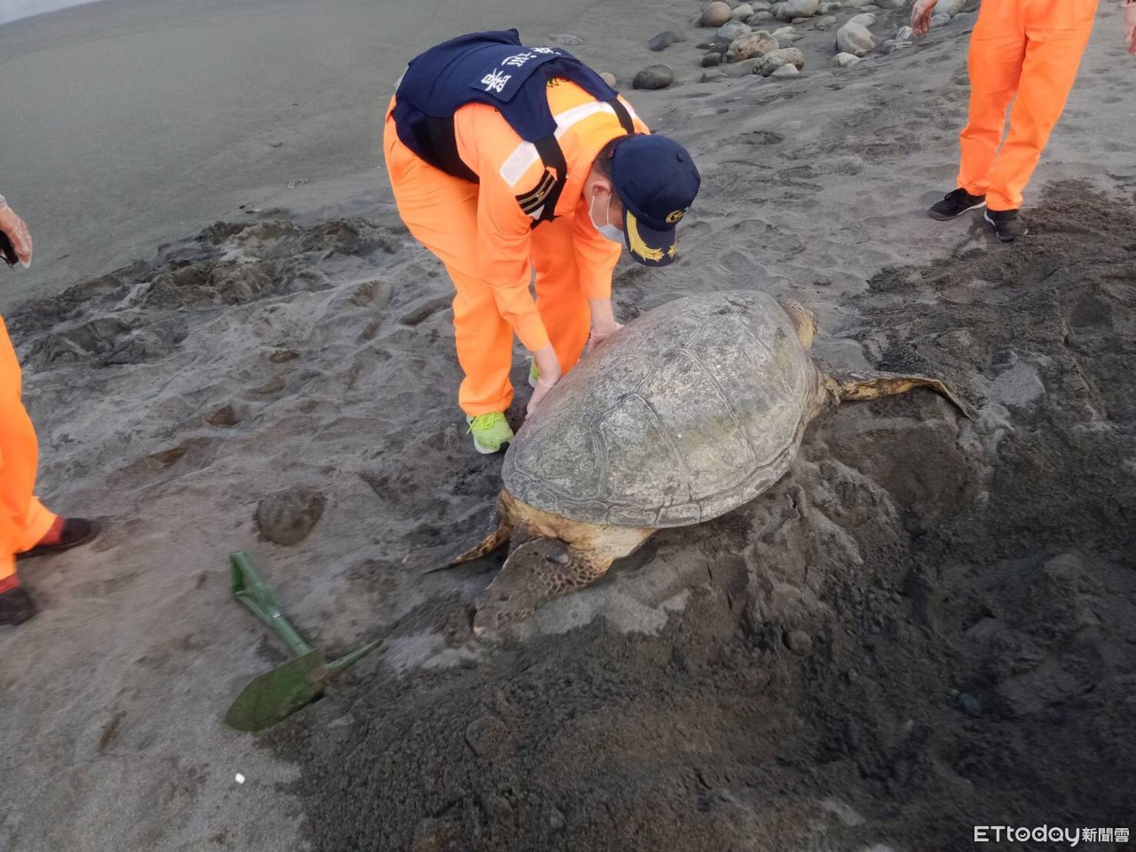 東部分署第10巡防區指揮部21日下午16時接獲民眾通報,於台東縣成功鎮白守蓮岸際發現一隻死亡海龜,遂立即派遣第13岸巡隊人員前往處置。
