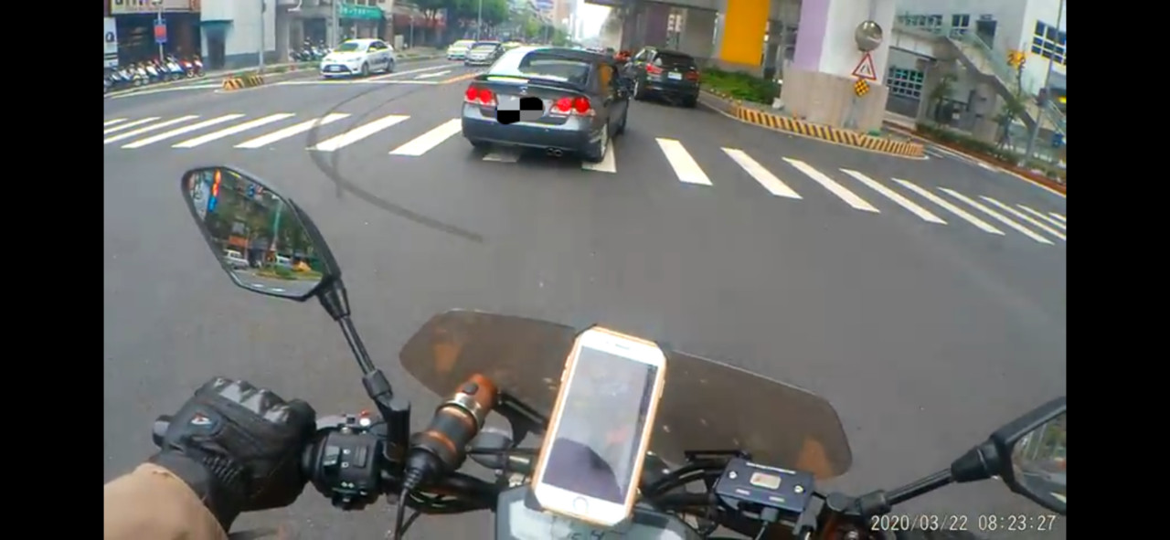 大型重機騎士表示,所幸當時行經該路口時車速不快,加上車體控制得宜才沒有撞上或摔車,對於轎車駕駛不願多做追究,僅希望類似的驚險事件不要再度上演。