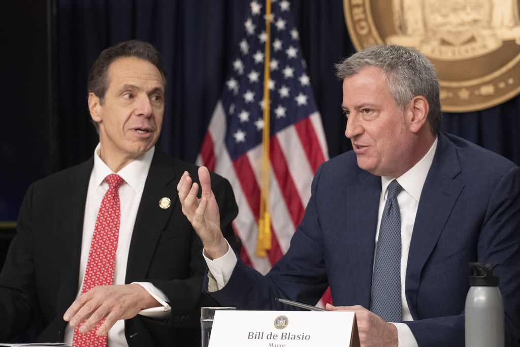 ▲紐約州長古莫(Andrew Cuomo,左)與市長白思豪(Bill de Blasio,右),於2日召開聯合記者會說明州內首宗病例狀況。(圖/達志影像/美聯社)