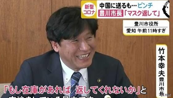 對此,竹本幸夫市長向無錫市新吳區喊話,如果還有庫存的話,希望能夠返還這4500個口罩。他表示,「面臨的情況還是來了,我們現在正在跟無錫市協商,如果還有剩的,能不能再還給我們一些,當初是想著,他們有困難,我們肯定要幫助一下,不過我們現在到處都買不到口罩,我認識到當初自己對疫情的判斷太天真了,市里現在也沒有儲備了,這也是我們需要反省的地方。」