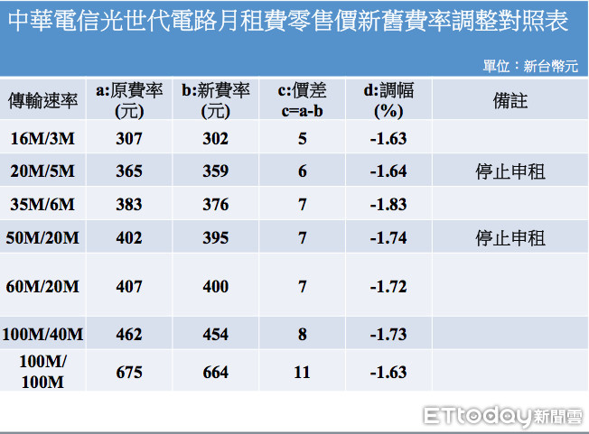 ▲109年中華電信光世代電路月租費零售價新舊費率調整對照表。4月起有314.5萬光世代用戶上網更便宜了。(資料來源NCC,製表/陳世昌)
