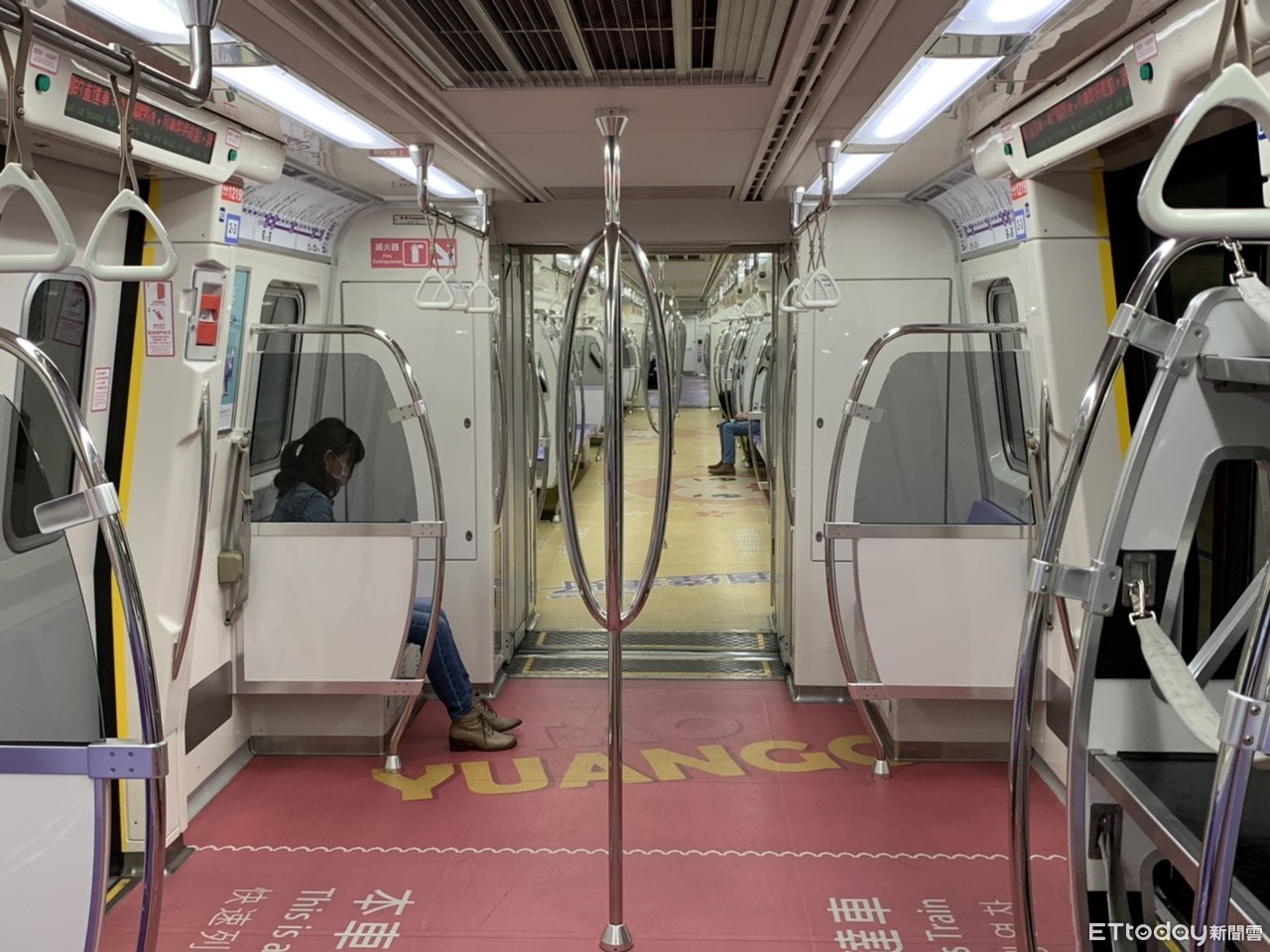 ▲因新冠肺炎疫情衝擊,桃捷運量幾乎腰斬,圖為離峰時期車廂內幾乎僅個位數旅客。(圖/記者沈繼昌攝)