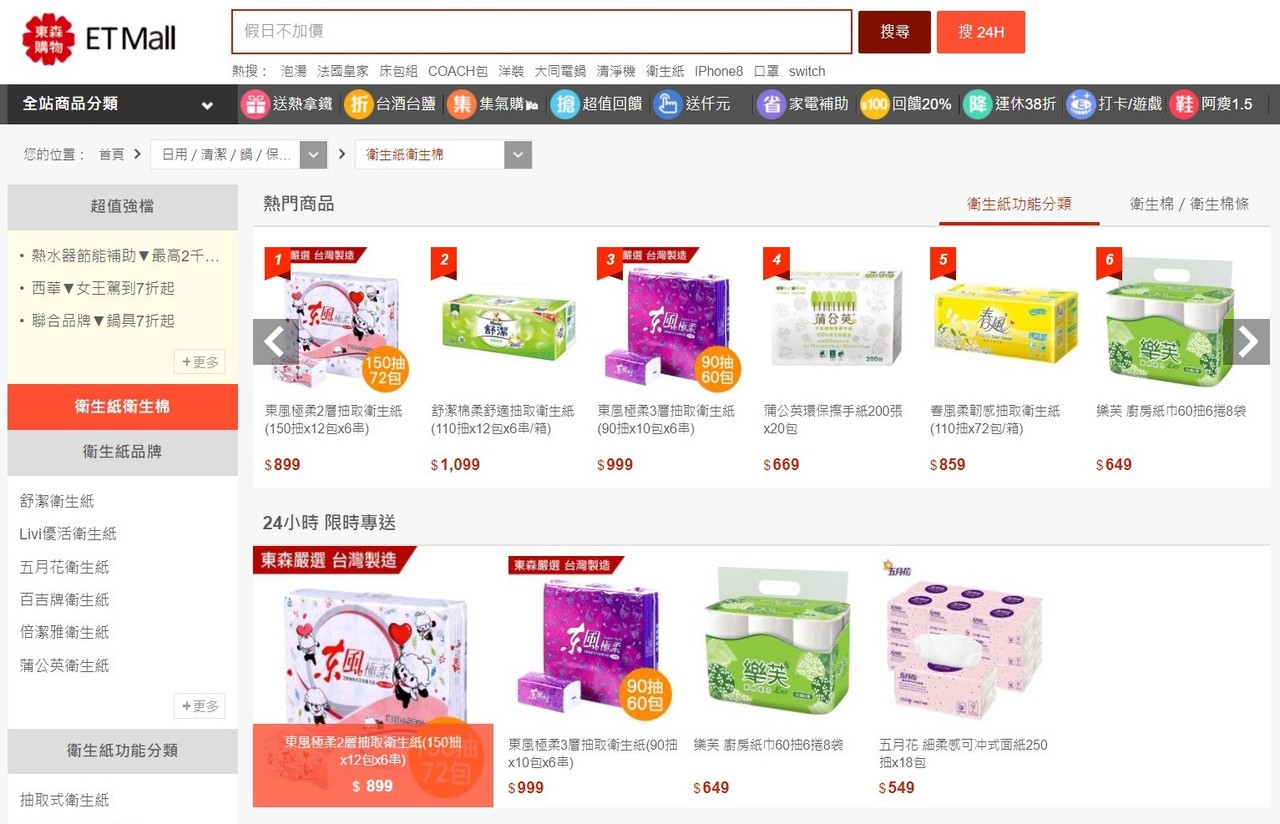 ▲東森購物觀察站上衛生紙仍熱銷,暫無趨緩現象。(圖/翻攝自東森購物網)