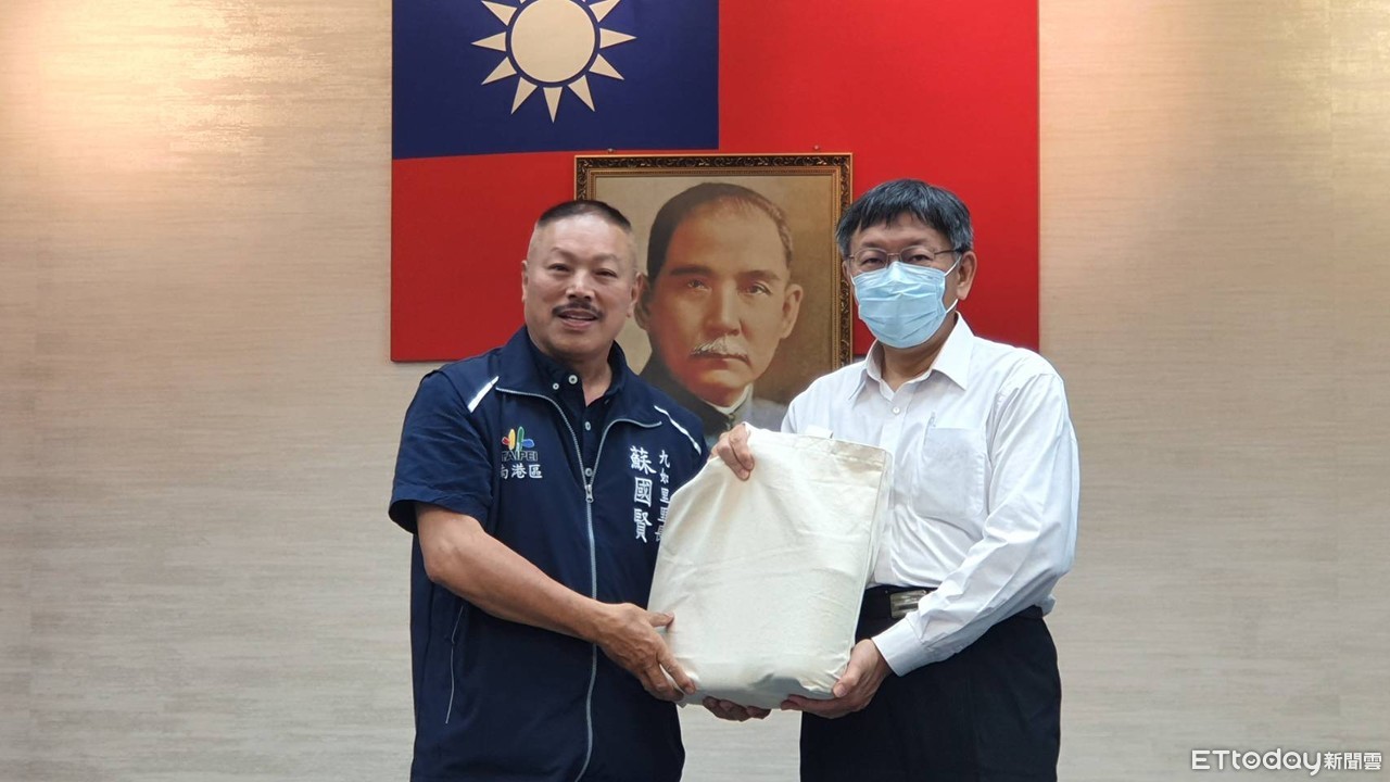 ▲柯文哲贈送市府防疫包給區長和里長聯誼會代表。(圖/記者陳家祥攝)