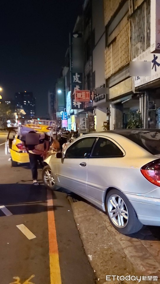 ▲警員朝該自小客敲打車窗,查看王姓男子身體有無異狀、神智是否清醒。
