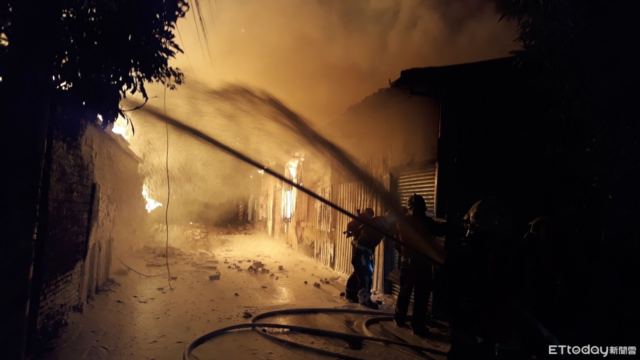▲彰化市1間鐵皮屋工廠晚間發生火警。(圖/彰化縣消防局提供)