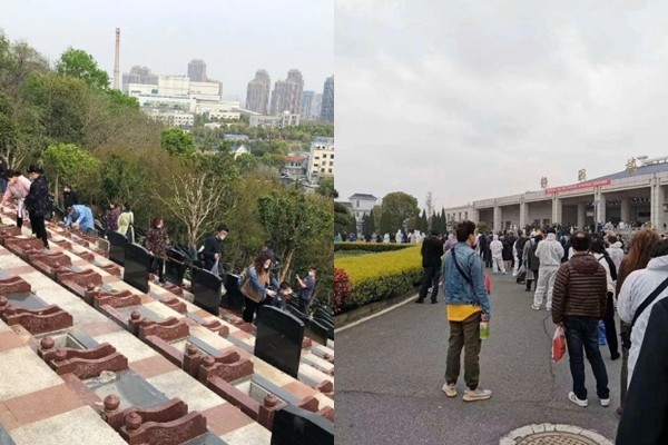 綜合陸媒報導,武漢漢口殯儀館門前26日有許多人排隊領骨灰,這些人要先排隊抽號碼牌,接著再向工作人員提交殯葬證、死者身分證等文件,填完表格後才能領取空的骨灰罈,將親人骨灰帶走。