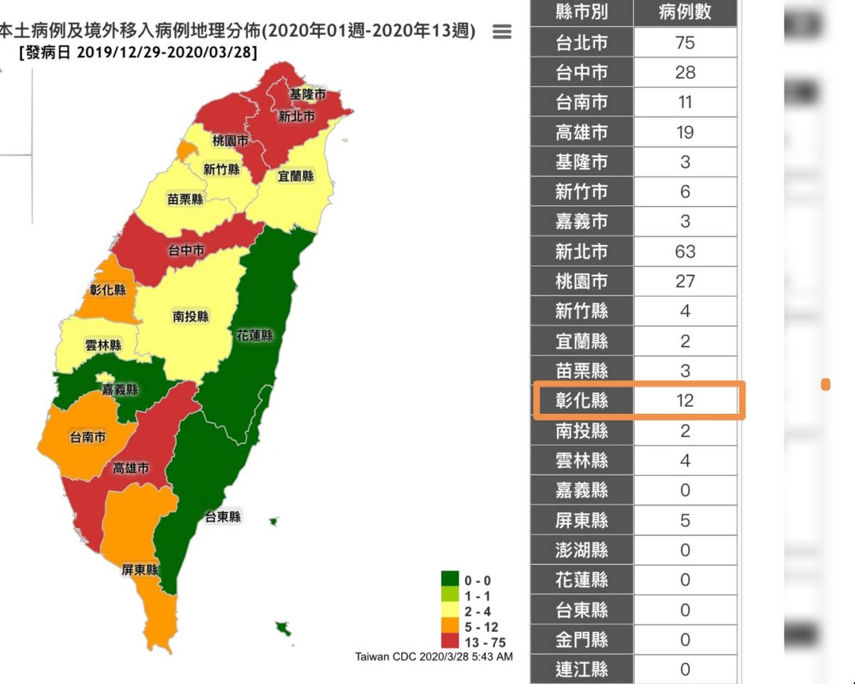 ▲彰化確診累計12例。(圖/翻攝自衛福部)