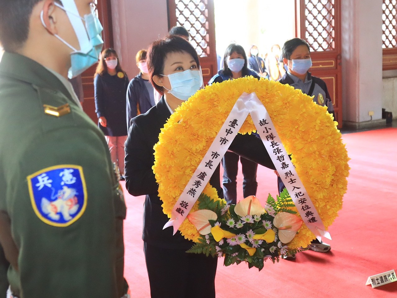 ▲盧秀燕出席忠烈祠春祭典禮,並安慰勇消張哲嘉遺族。(圖/台中市政府提供)