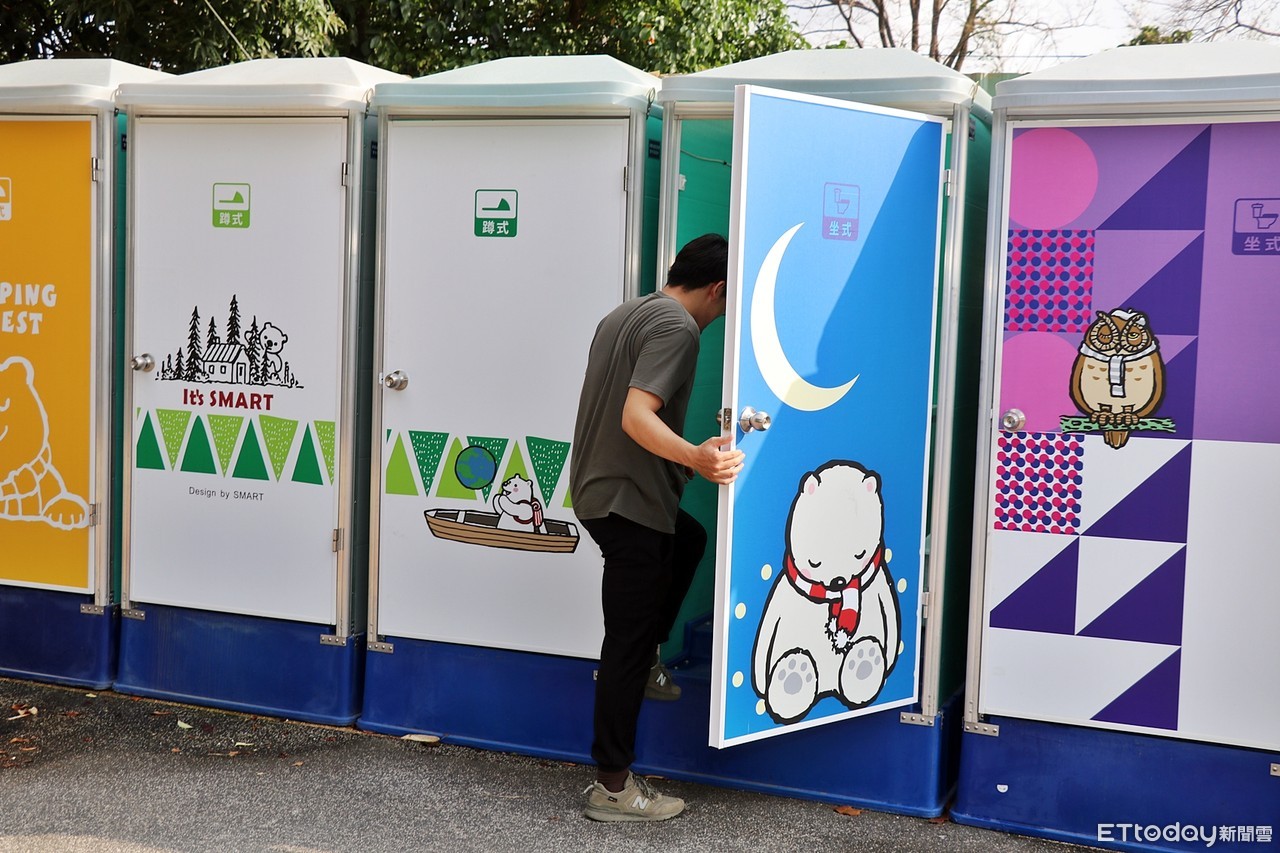 考量到公廁施工,可能會影響運動者、遊客如廁的便利性,因此觀光新聞處特別配置9座臨時流動廁所,同時9座的其中1座更特別是無障礙專用流動廁所,滿足旅客使用需求。這9座流動廁所也擺脫以往灰綠灰藍的沉悶顏色,而特別設計了時下最夯大白熊可愛圖案,讓流動廁所變得更美麗。