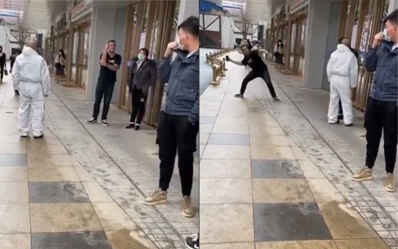 據陸媒報導,從網路上曝光的影片可見,事發地點在西安市南飛鴻廣場附近,該名外籍男子和防疫人員僵持小區門口,卻仍拒絕配合戴上口罩,不斷以髒話辱罵防疫人員,最後更忽然暴怒,直接將手機大力砸向對方。