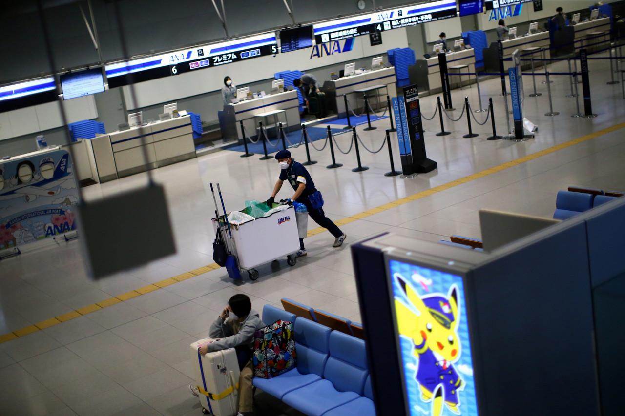 中央社報導,關西機場自1994年啟用後,旅客數在2019年首度突破3000萬人次,但隨著疫情越來越嚴重,上週約莫9成(約1100架)國際線航班取消,前往中港澳、南韓的航班取消率飆至95%,樂桃航空自20日起取消所有國際線航班,關西機場國際線航站人潮不再,幾乎看不到旅客的蹤影。