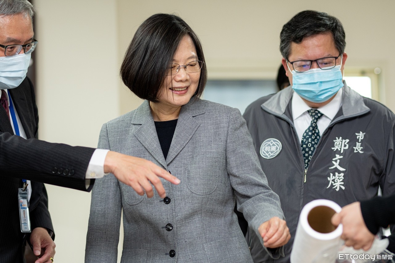 ▲蔡英文總統與桃園市長鄭文燦參訪敏成公司製造口罩流程。(圖/記者沈繼昌翻攝)