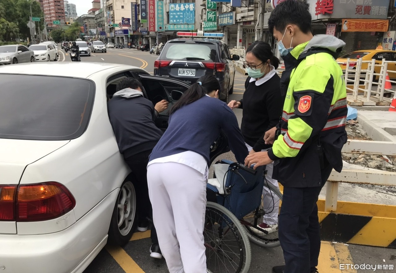 ▲桃園市一名孕婦29日因羊水破裂即將臨盆,張姓先生開車送醫,但陷入車陣動彈不得,桃警協助開道送醫。(圖/記者沈繼昌翻攝)
