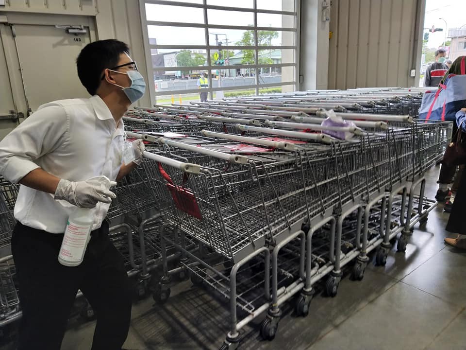 這位女網友在臉書公開社團《Costco好市多 商品經驗老實說》貼出照片,文中表示,在疫情爆發前,她就習慣隨身帶消毒用品出門,外出方便自己和小孩使用,所以當她到好市多,看到員工噴酒精消毒每台推車把手時,就感到溫馨的笑了。