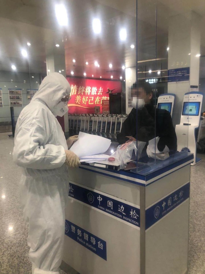 ▲黃男進行入境作業。(圖/翻攝自台州公安微博)
