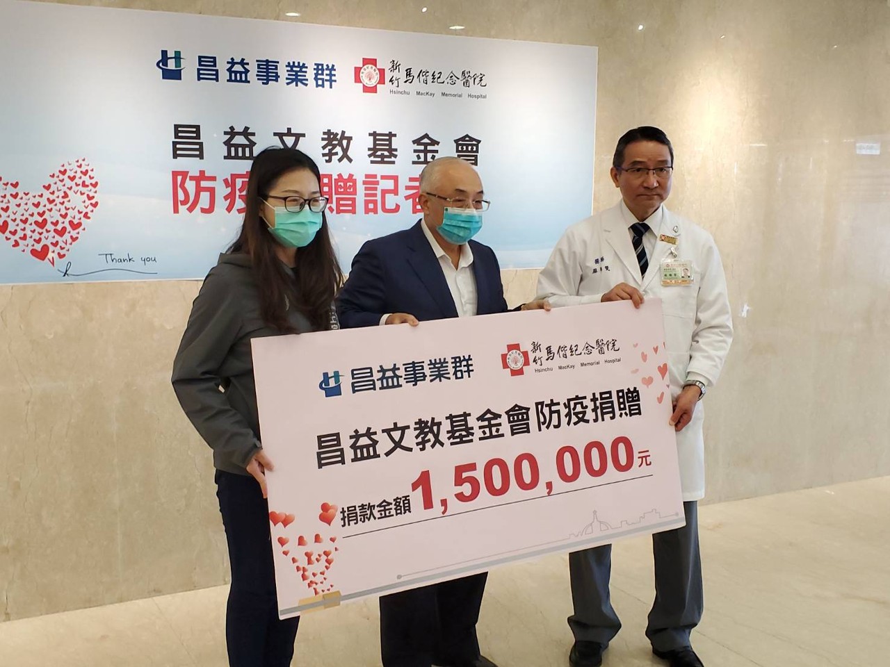 隨著全球COVID-19新型冠狀肺炎疫情拉警報,台灣政府、民眾備感壓力,政府資源有限,民間力量無窮!昌益文教基金會用實際行動支持新竹馬偕醫院防疫工作,協助醫院對抗此波疫情帶來的考驗,共同守護第一線醫療人員的健康。