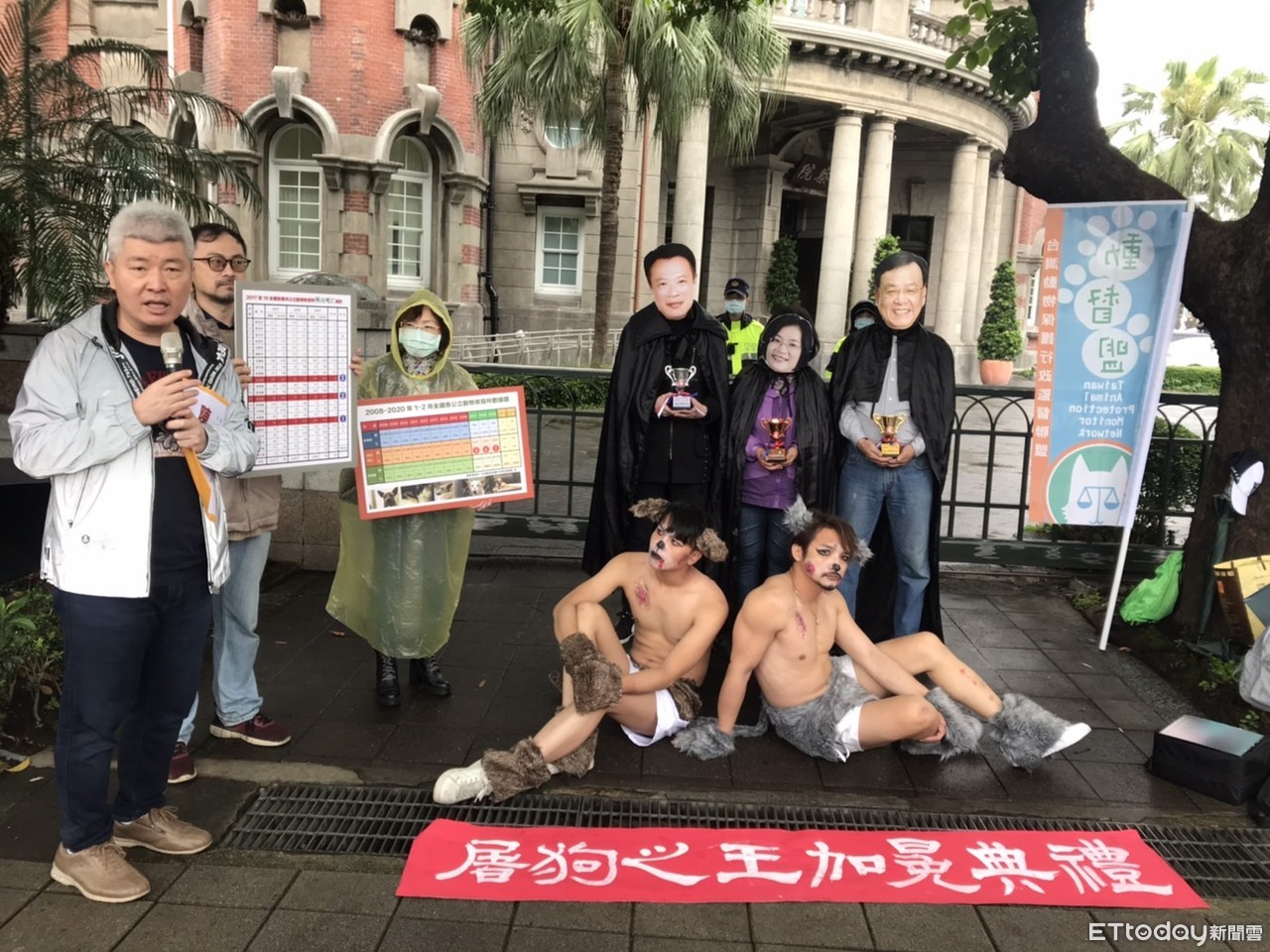 ▲動督盟在監察院門口裸身打扮成毛小孩演行動劇。(圖/記者許展溢攝)