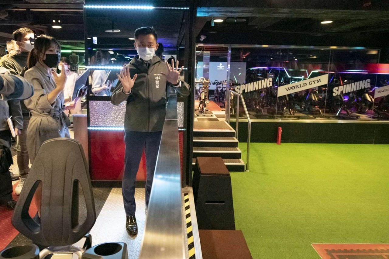 林智堅強調,健身房位在室內且人潮較多,需要以更高標準來檢視各項防疫整備工作,業者親自說明該場所的防疫措施,除了量額溫、酒精消毒外,也加強會員實名制登錄、透過空調內外對流保持新鮮空氣流通,會員卡消毒避免接觸感染,並且每一小時全部健身器材及廁所衛浴消毒降低感染的風險,林智堅市長也建議業者可以勸導民眾使用器材保持安全距離,對於業者積極的作為他給予高度肯定。