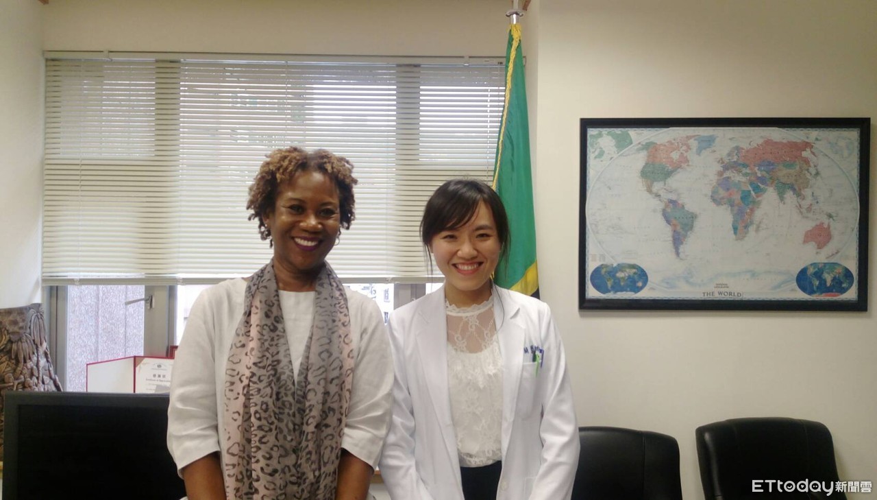 ▲聖克里斯多福及尼維斯查斯敏・哈菁絲大使(左)與台北榮總黃盈綺醫師合影。(圖/台北榮總提供)