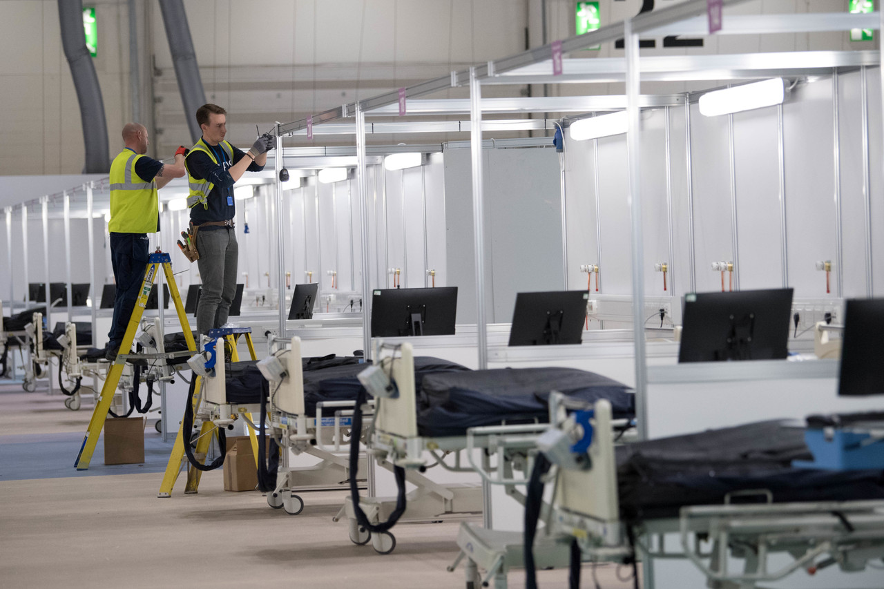 ▲英國疫情升溫,加緊腳步建臨時醫院與停屍間。(圖/路透社下同)