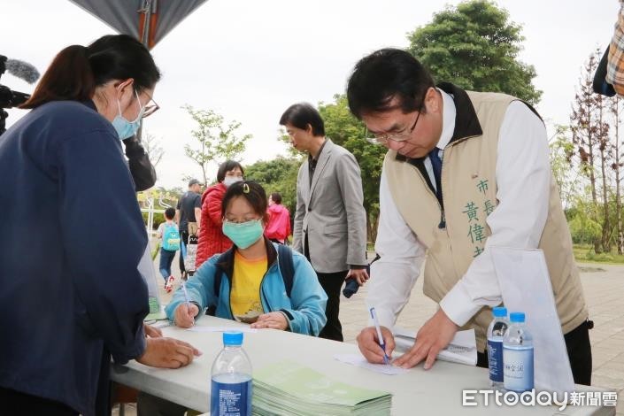 ▲台南市長黃偉哲特別前往山上花園水道博物館視察相關防疫作為,並親自簽名響應防疫實名制入場。(圖/記者林悅翻攝,下同)