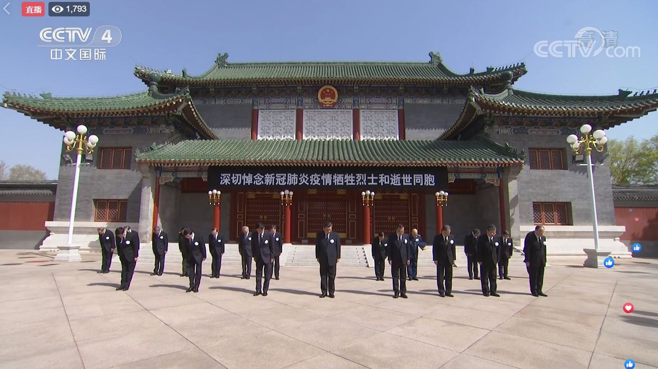 為表達對新冠肺炎疫情犧牲者的深切哀悼,大陸4月4日舉行全國性哀悼活動,上午10點全國民眾默哀3分鐘,汽車、火車、艦船鳴笛,防空警報鳴響。此外,大陸全國和駐外使領館降半旗致哀,公共娛樂活動全部停止。