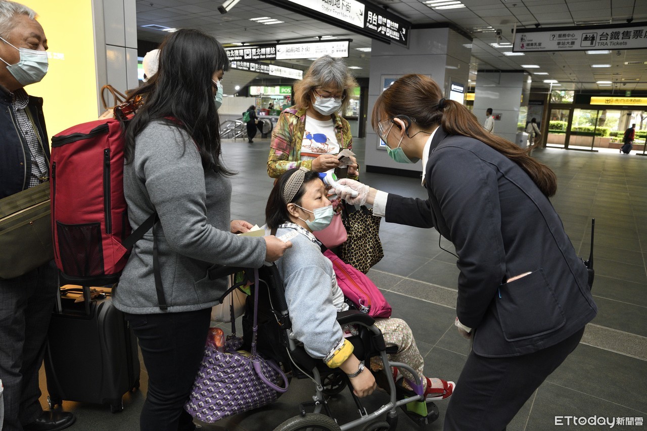 ▲▼4/1防疫新制上路,進入高鐵車站的旅客,一定要配戴口罩量測體溫,確認沒有發燒後才能進入車站搭車。(圖/記者湯興漢攝)