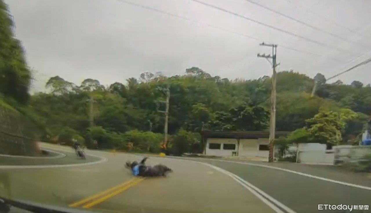 據行車紀錄器顯示,林姓騎士在過彎時車速過快,一時打滑失控而倒地,因速度太快直接撞上對向小客車,撞擊力道過大還讓機車零件噴飛,騎士雖頭戴安全帽,還是撞得頭破血流,送醫不治。