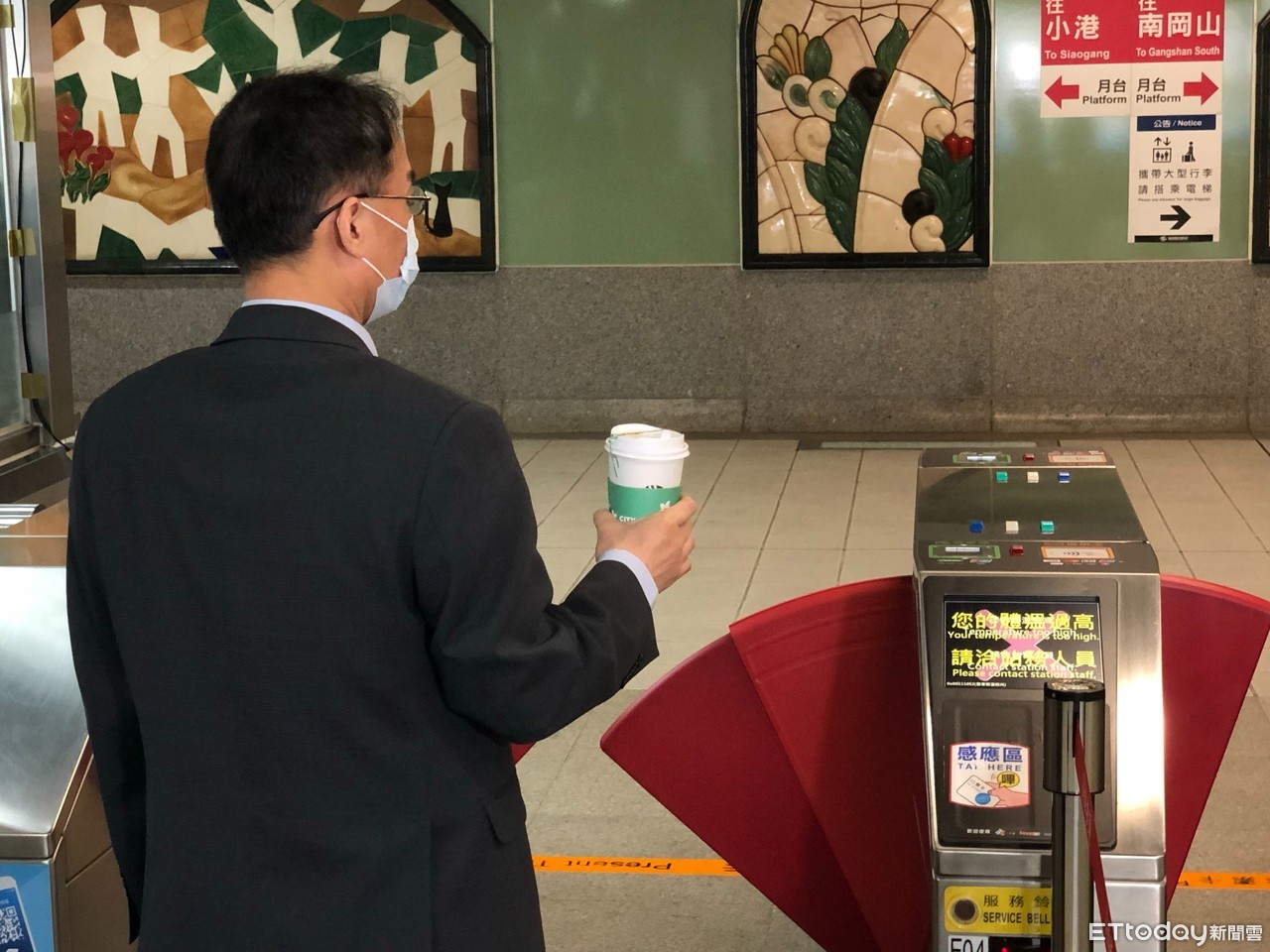 ▲實測拿熱咖啡進站也遭量測體溫過高。(圖/記者許宥孺翻攝)