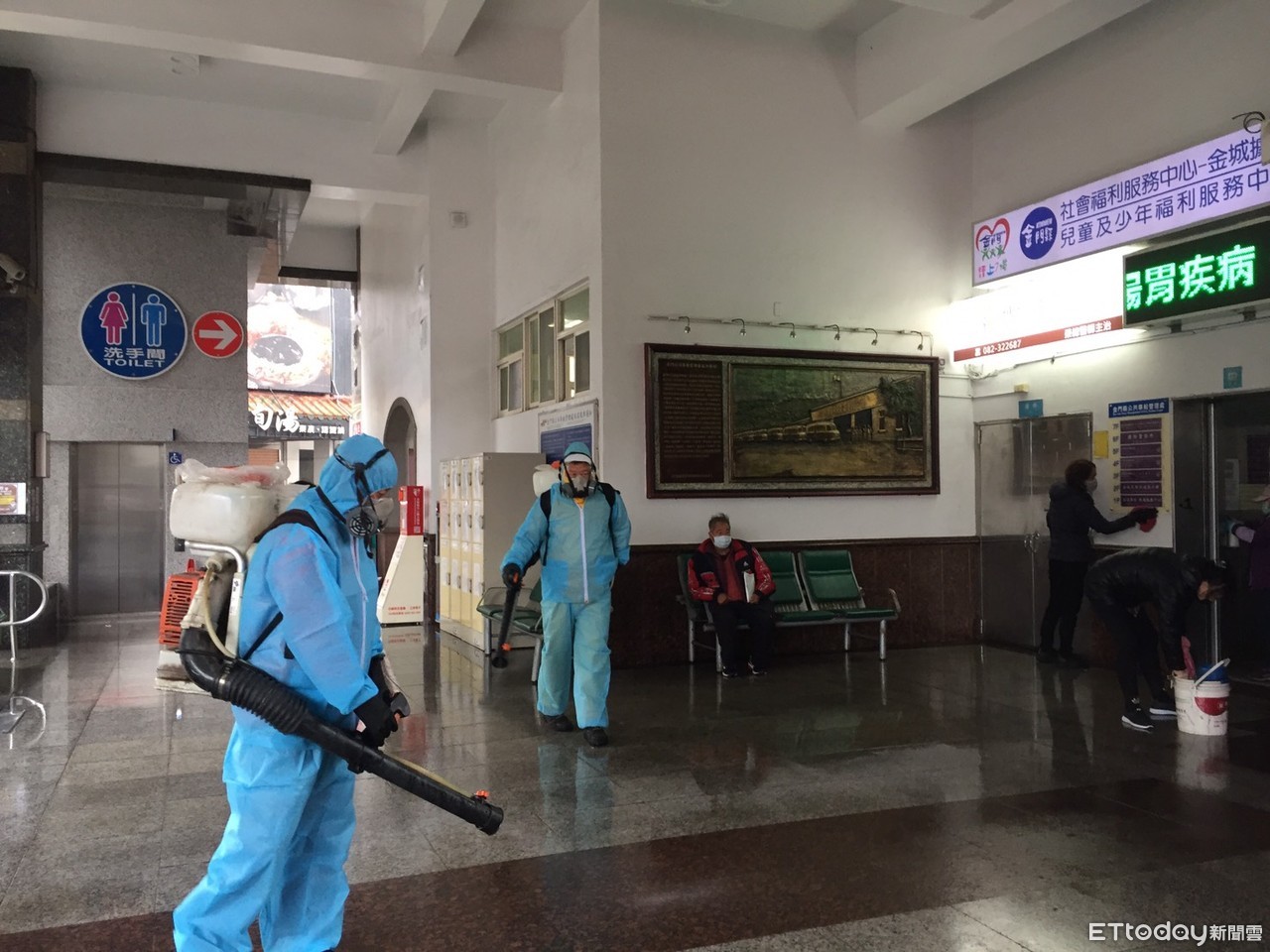 ▲清明連假過後,金門縣政府針對公共場所進行全面消毒。(圖/記者葉小金翻攝,下同)