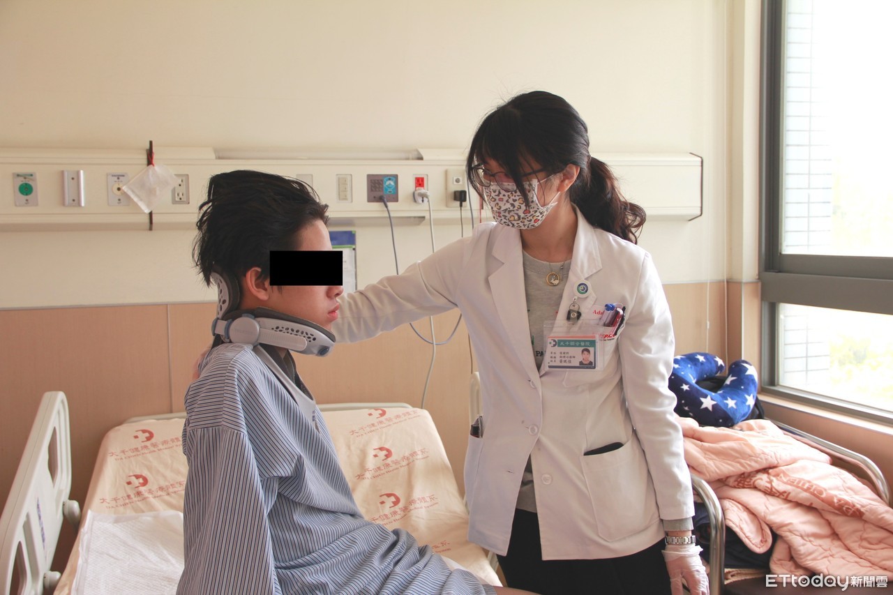 大千綜合醫院神經外科李世祥主任表示,這名男學生到院時有頸部嚴重疼痛、身體完全麻木無感覺、4肢完全癱瘓的情形,經檢查後發現其第5頸椎骨折、合併頸椎脊髓神經損傷,在接受緊急手術並於加護病房密切觀察後,男學生狀況逐漸穩定。
