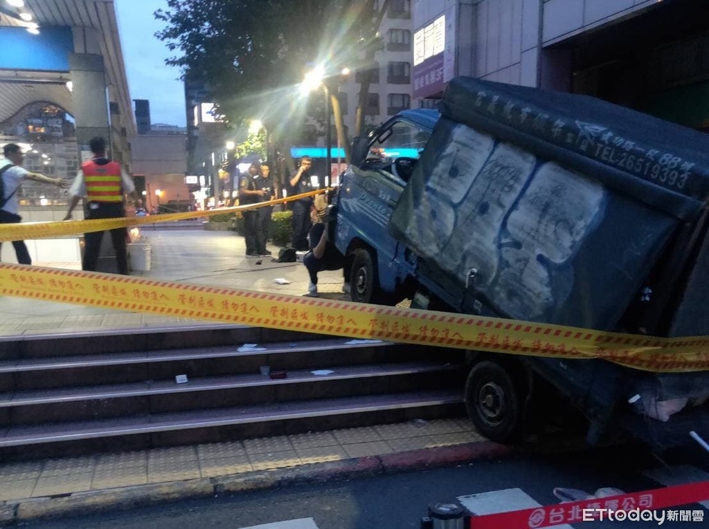 ▲小貨車暴衝捷運出口,釀1死1傷。(圖/記者黃彥傑攝)