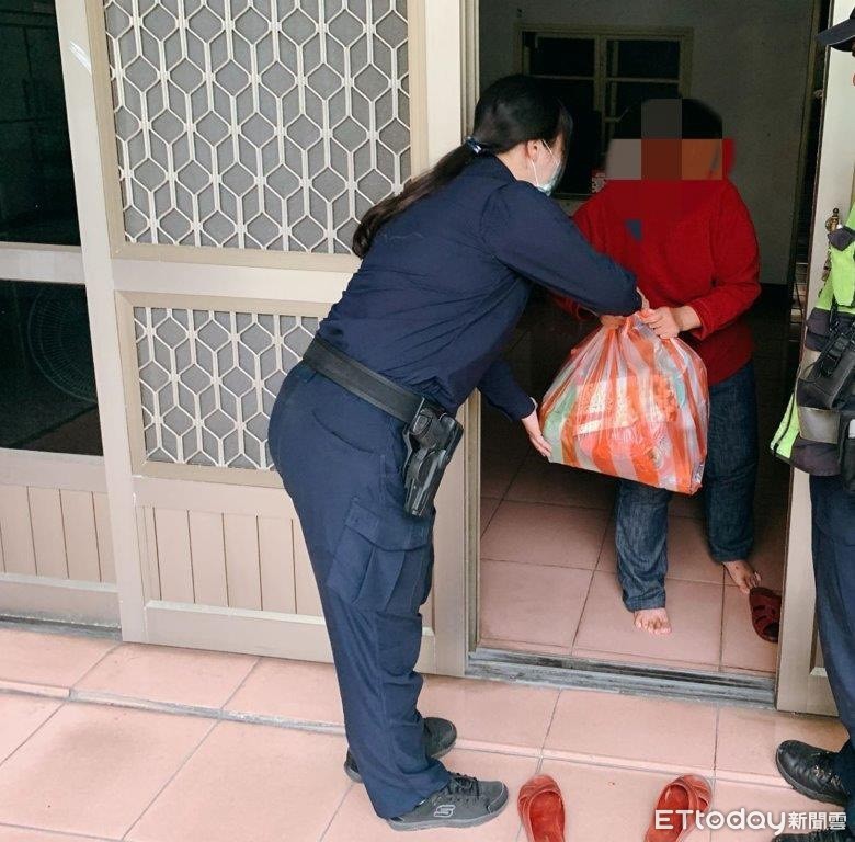 ▲東港警分局東濱派出所警員吳怡蓉將救濟物質轉介給蔡姓婦人,讓她很感激 。(圖/記者陳崑福翻攝)