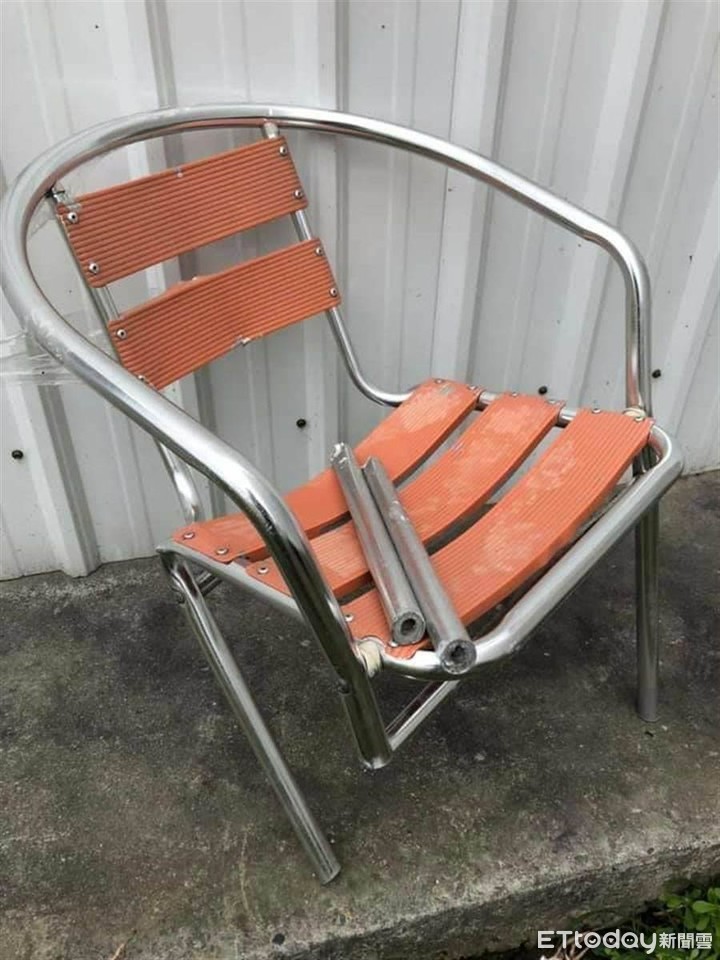 ▲▼ 慶生玩過頭,台東男遭綁椅子用高壓水柱噴洗,鐵椅的腳座還以此壞掉 。(圖/記者楊鈞典翻攝,下同)
