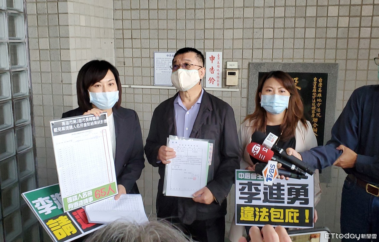 國民黨市議會黨團議員陳麗娜及陳美雅,於8日下午前往高雄地檢署,與韓國瑜市長委任的林石猛律師按鈴告發中選會主委李進勇違反選罷法,而尹立、陳冠榮、張博洋、李佾潔,涉偽造文書。