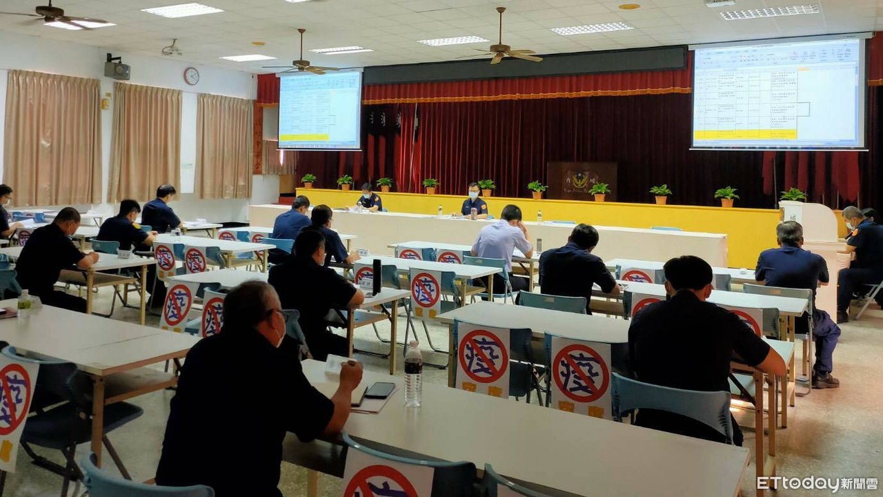 ▲屏東縣內埔警分局專案、會議均採跳蛙式座次,防範疫情 。(圖/記者陳崑福翻攝,以下同)