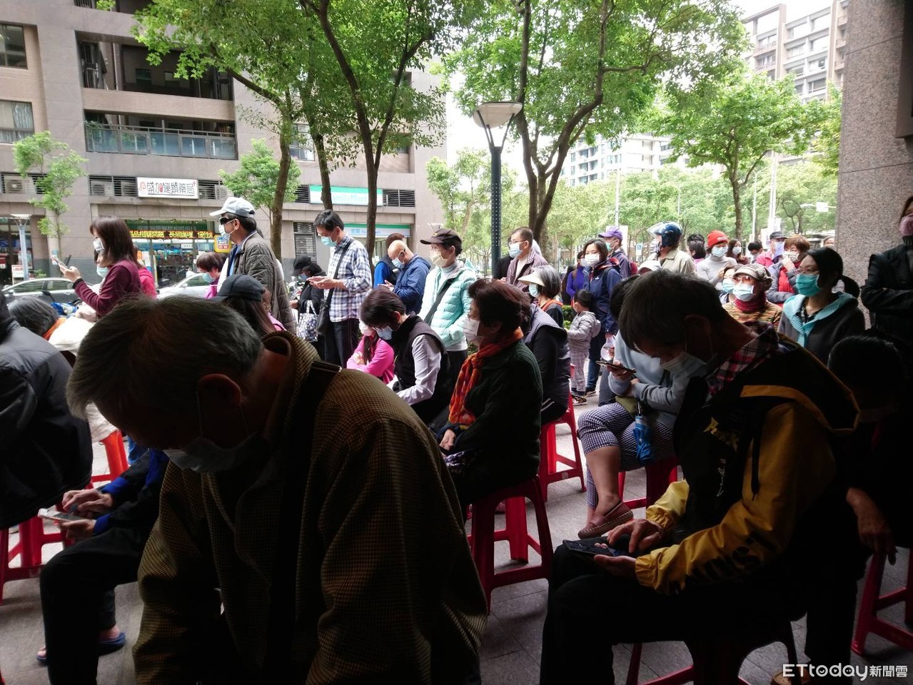 政府口罩實名制開放採APP預購後,原已大幅減少藥局排隊人潮,許多藥局下午開賣,晚上仍剩很多可隨時購買,但今天口罩14天9片首日開賣,由於數量增加,因此排隊人潮再現,八德路中崙市場周邊的多間藥局,就出現超過200公尺長長隊伍,也有民眾提早近2小時帶著椅子在藥局前排隊等待。