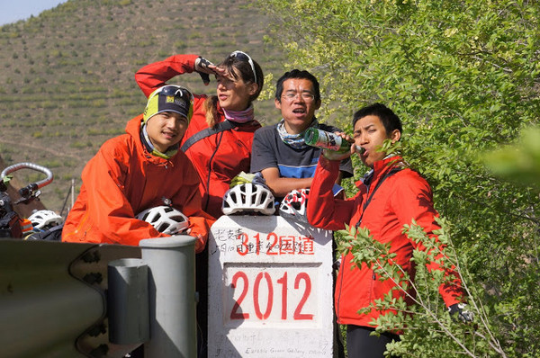 昨天經過了代表每個人生日的312國道里程碑之後,今天同樣又有個讓人期待的數字就是2012!辛苦翻過第一座山,到了之後發現同樣對這里程碑有興趣的不只有我們而已,已經有不少騎友在上面作過文章,留下代表自己的印記,有幾個還只早我們幾天路過而已,可惜沒能碰上。
