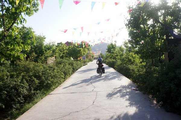 苦水這裡是個很小的鎮,招待所屈指可數,另外還有第一次看到的"農家樂"可以住宿。走了幾間農家樂,看起來都挺新穎的,有點類似台灣的民宿,但價格都高得嚇人,還是往下一個村莊移動另作打算。
