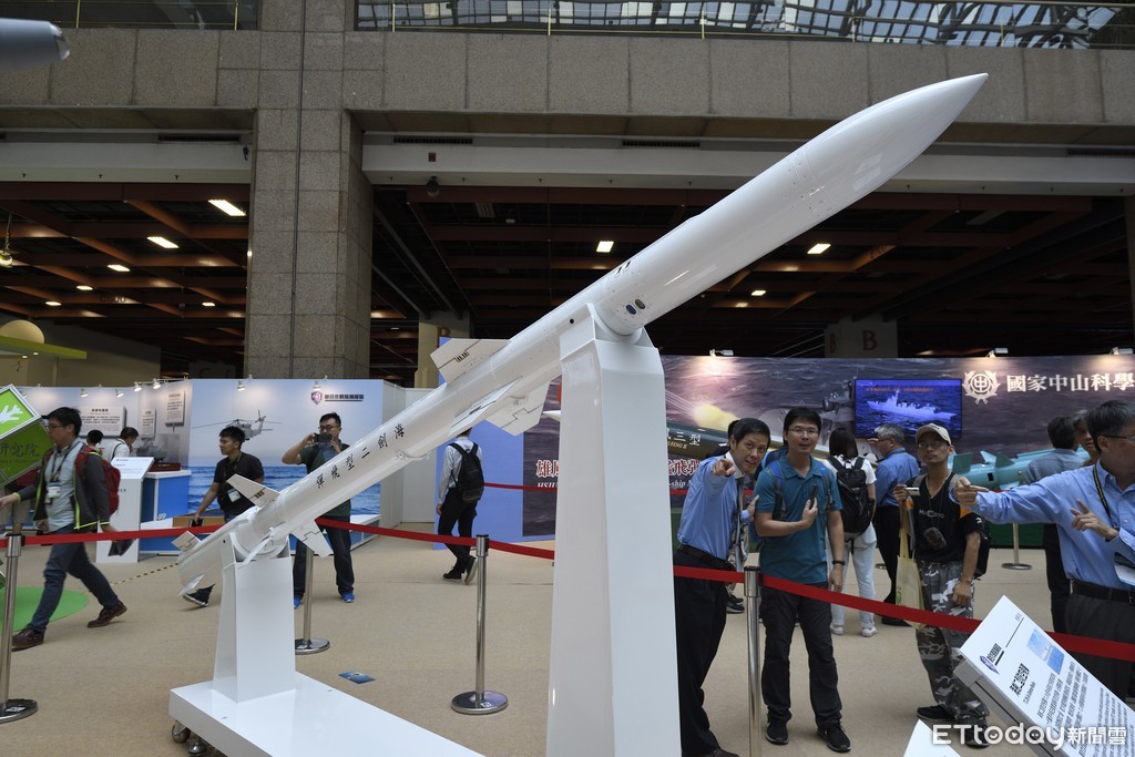 ▲海劍二型防空飛彈在台北國際航太暨國防工業展亮相。(圖/記者湯興漢攝)