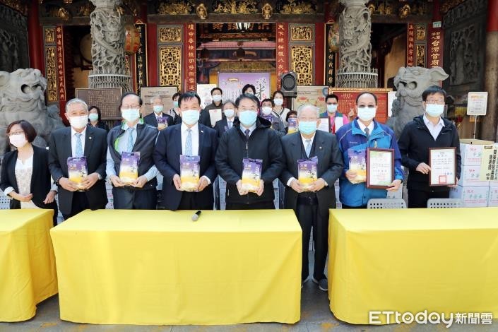 ▲台灣首廟天壇,在台南市長黃偉哲見證下,捐出5460包平安米及145包30公斤裝白米給台南市各社福團體及弱勢族群。(圖/記者林悅翻攝,下同)