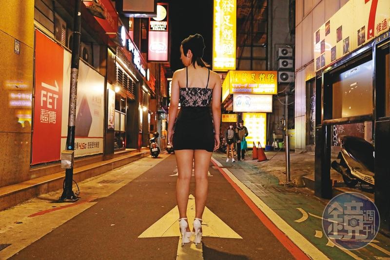 ▲酒店因疫情遭勒令停業,酒店公關萱萱(化名)回到過去熟悉的台北林森北路巷口,夜生活已不復以往,失業的她希望政府能將酒店公關納入紓困對象。(圖/鏡週刊提供,下同)
