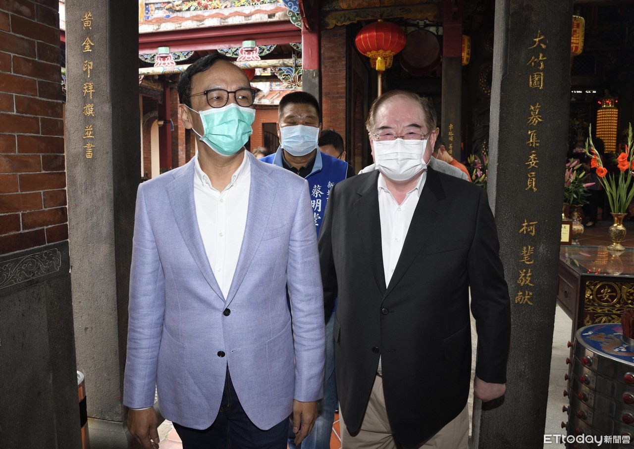 ▲朱立倫在李乾龍的陪同下,參拜三重先嗇宮神農大帝。(圖/記者湯興漢攝)